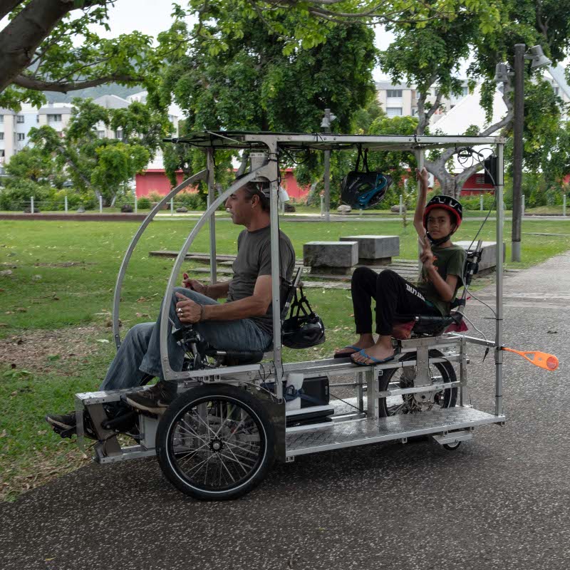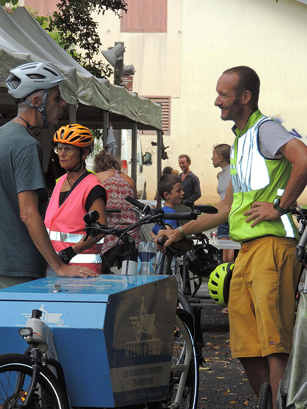 L’arrivée en fanfare de l’association Zéro déchet muni de son Vhélio a été un moment phare de l’événement. Les bénévoles ont pu proposer des balades sur le parvis du Teat de Champ fleuri.