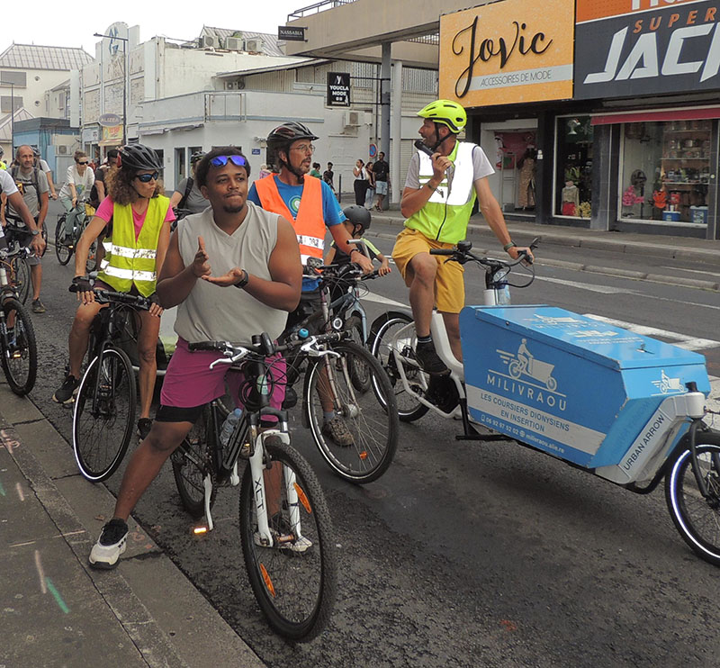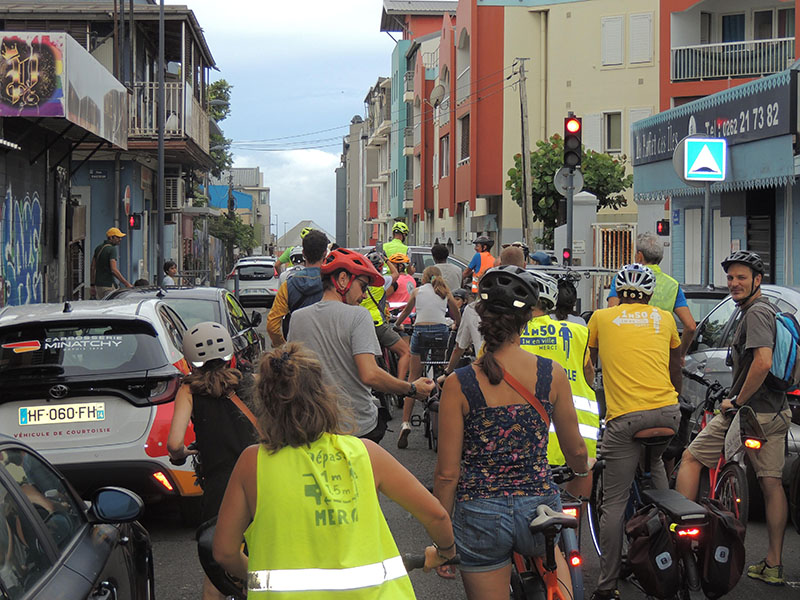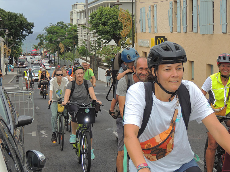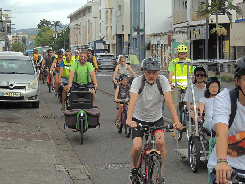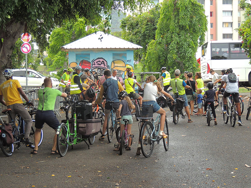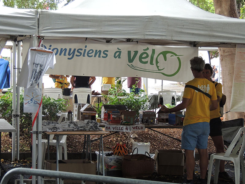 Le Collectif réunionnais des usagers de la bicyclette (CRUB) et les Dionysiens à vélo ont animé le Village système vélo puis, à 16h, les bénévoles ont encadré une Véloparade dans les rues de Saint-Denis, l’occasion de faire la promotion des aménagements cyclables et d’annoncer le concert de Grèn Sémé le soir même.