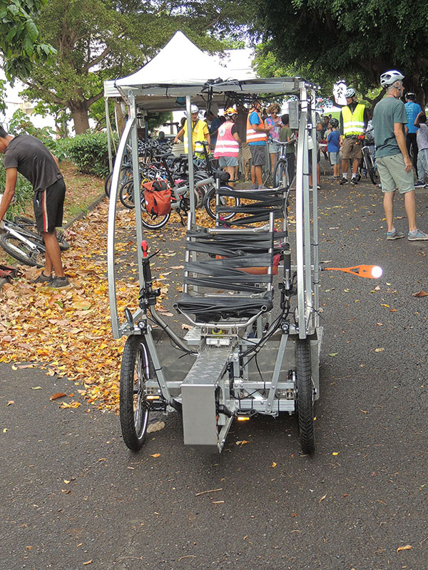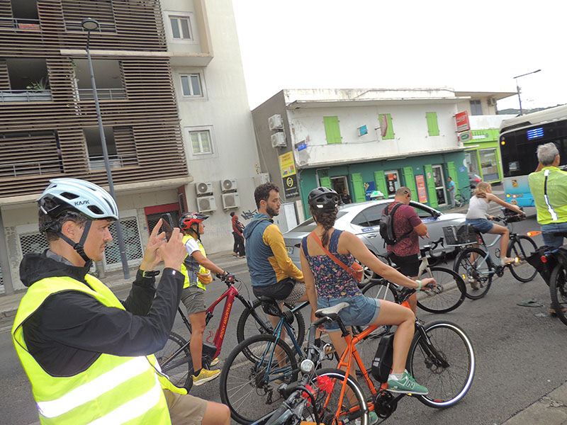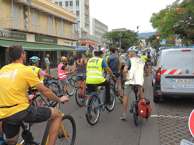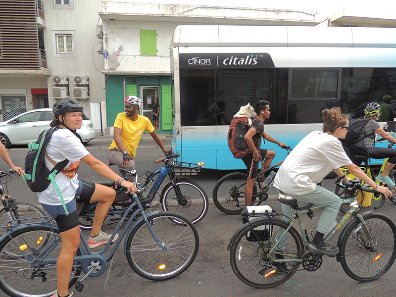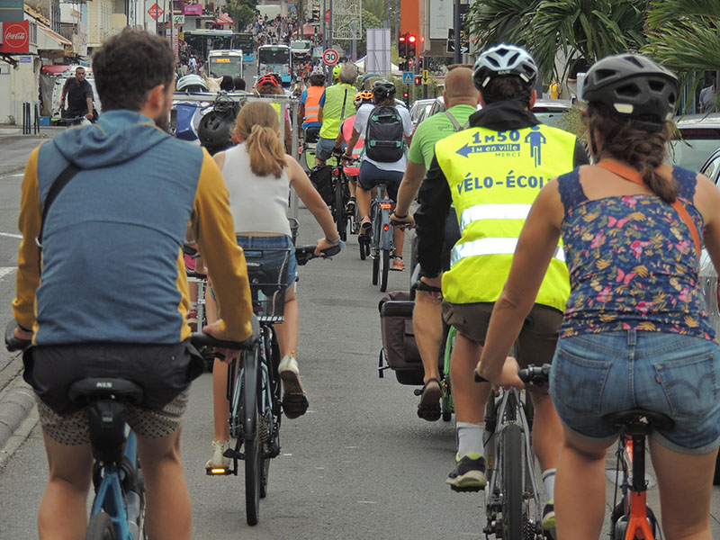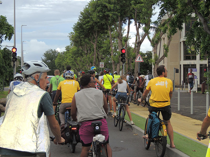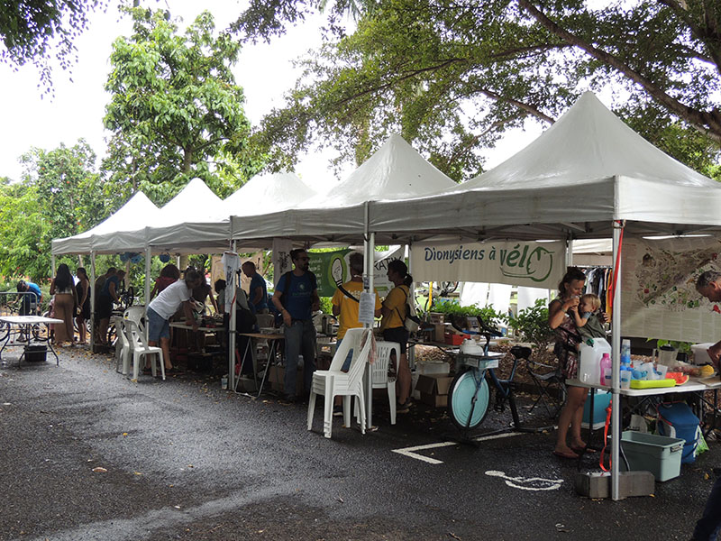 Le Collectif réunionnais des usagers de la bicyclette (CRUB) et les Dionysiens à vélo ont animé le Village système vélo puis, à 16h, les bénévoles ont encadré une Véloparade dans les rues de Saint-Denis, l’occasion de faire la promotion des aménagements cyclables et d’annoncer le concert de Grèn Sémé le soir même.